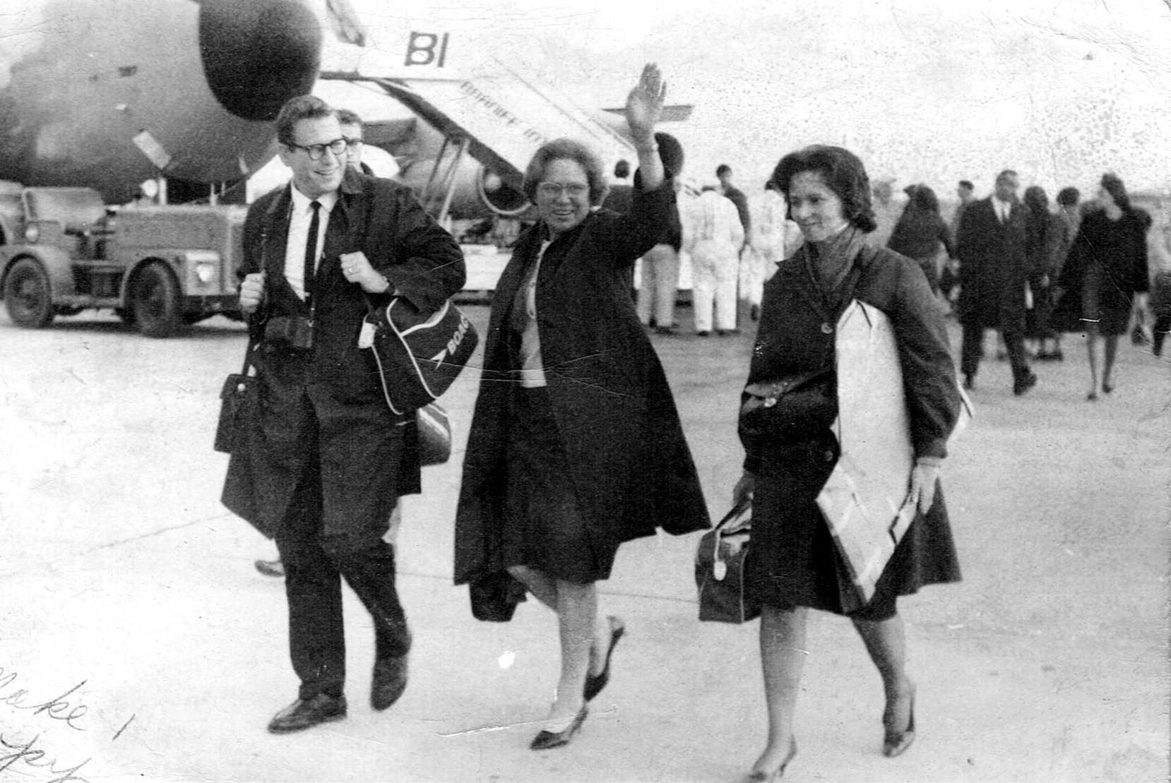 Janet Meneses (Janet Wolf at that time) preparing her belongings for transportation from Ohio to Brazil in 1973.Missionaries Darrell and Jean Haworth arrive with a colleague (in the middle) in Fortaleza, Ceará.