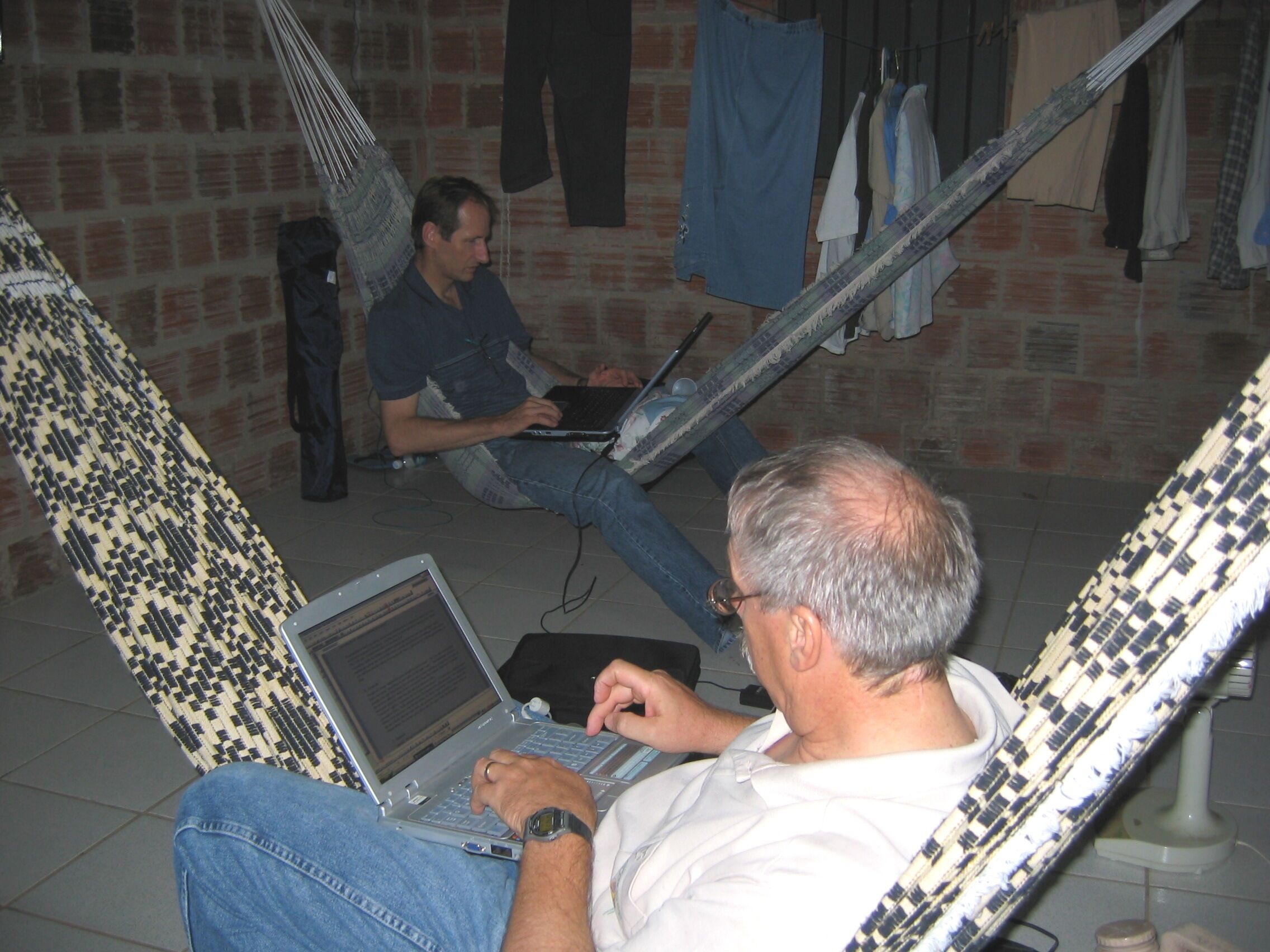 …and here is Mark Willson, well into the computer age. As a side note…laptops were absolutely made to be used with hammocks. Darrwell and Jean Haworth were pioneers in musical ministry. Many people in our churches owe their musical proficiency, directly or indirectly, to the early influence this couple had.The Cariri Baptist Seminary has had an enormous influence on the ministry in our region. All of the missionaries featured here served there at one time or another. Mark Willson spent his whole career teaching and serving in other capacities Not only did Luís Meneses serve at the seminary, he was also a graduate.Another ministry Luís was heavily involved with was the Christian bookstore, at the time the only one in the region. Of course all the ministries we are engaged in revolve around the local church and the fulfillment of the Great Commission……teaching all nations……and baptizing them in the name of the Father, the Son, and the Holy Spirit.
